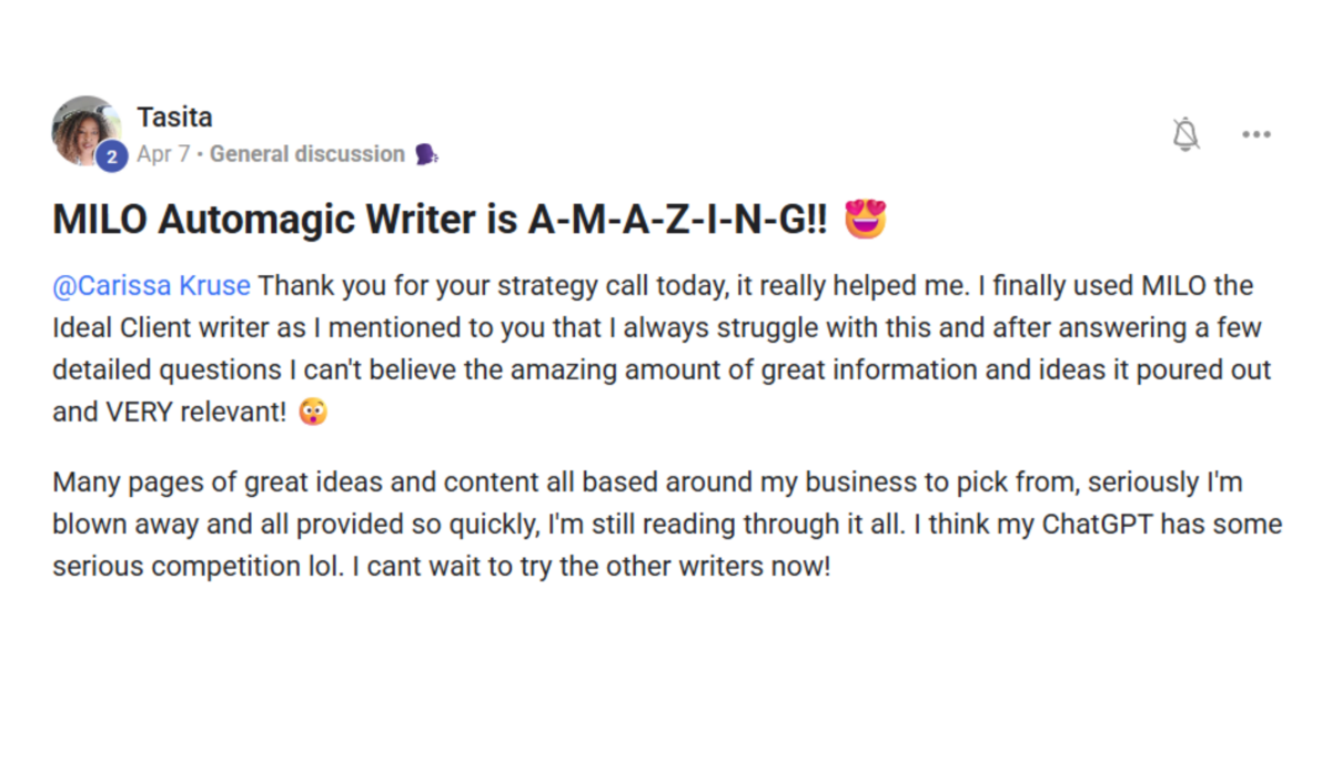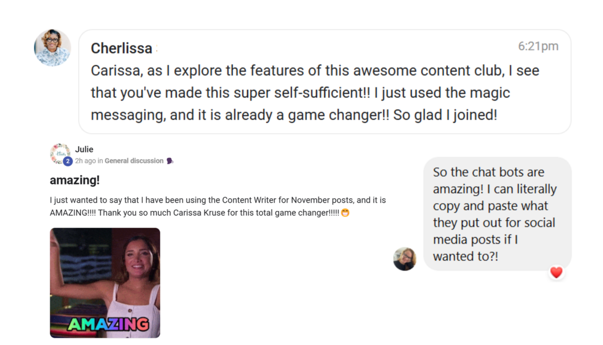 This vault gives you the clarity and structure—your message and your plan. If you want help writing the actual captions, emails, and blog posts, we recommend pairing it with the Content Club for AI-powered writing tools and done-for-you content.